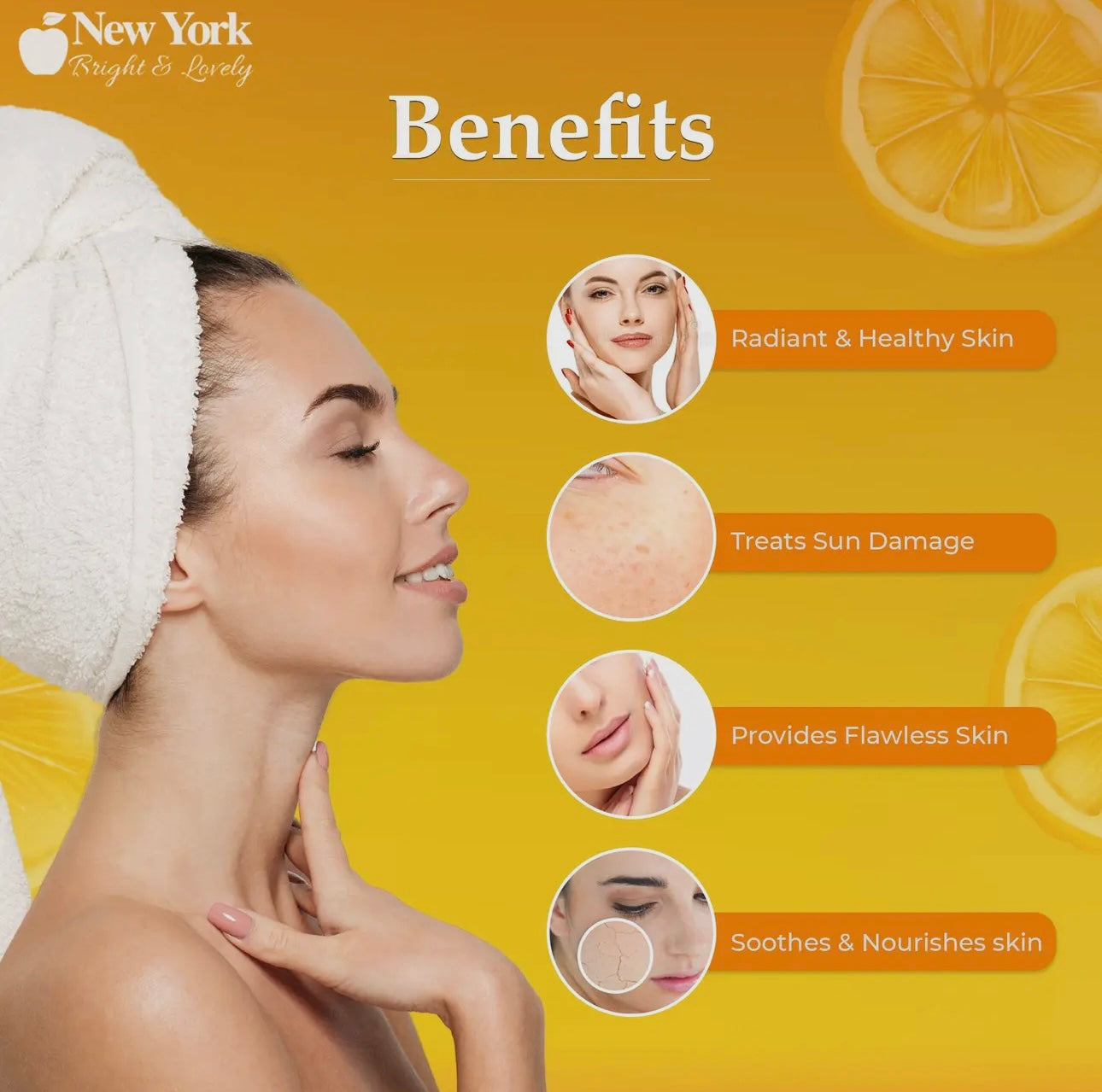 The New York Bright & Lovely Lightening Soap with Vitamin C and Hyaluronic Acid cleanses your skin with its smooth foaming action.